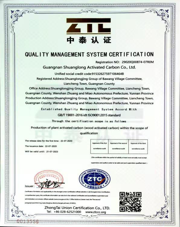质量管理体系认证证书